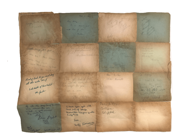 Pages from an autograph book 1961-63. 22″x 17 3/4″. Collection of the artist.