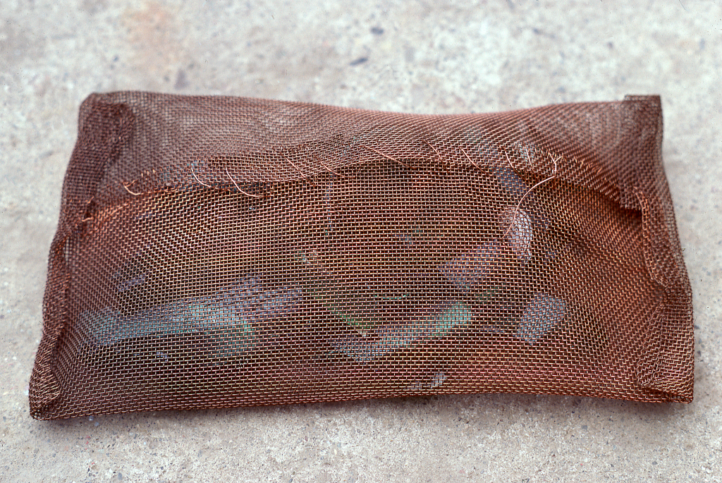 Glass and copper screen. 12”x 6 1/2”x 3”. Collection of Anne Marchand and Steve Foster.