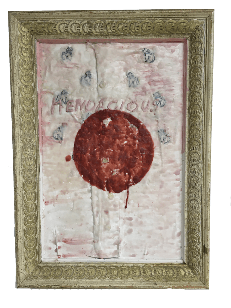 .0358 Mendacious 1986? April 22, 2021July 8, 2022betsypackard Wax and fabric on wood. 21”x 15”. Collection of the artist. Share this: Click to share on X (Opens in new window) X Click to share on Facebook (Opens in new window) Facebook Like Loading... Related
