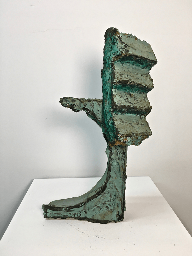 Painted plaster and newspaper. 14″x 9″x 5″. Collection of the artist.