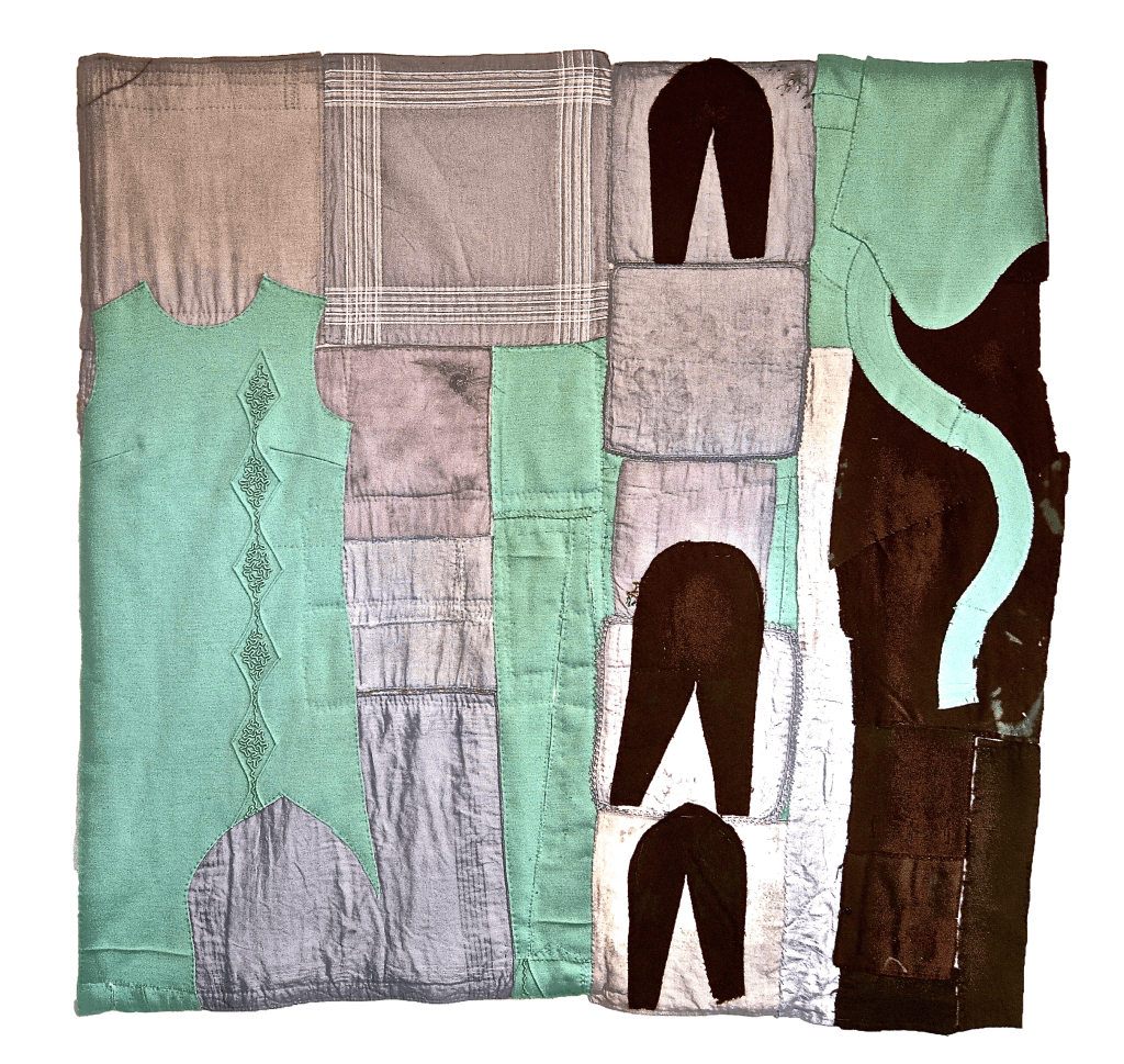 Saved clothing, wool, cotton, polyester. 54″x 56″. Collection of the artist.