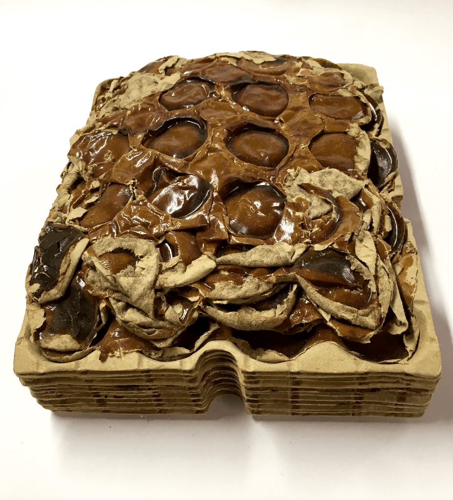Cardboard, latex, 10 1/2”x 8 1/2”x 4 1/2”. Collection of the artist.