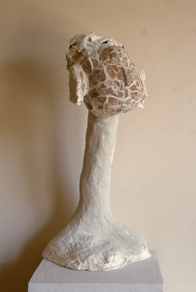 Painted plaster and casting stone. 16″x 11″x 8″. Repaired. Collection of the artist.