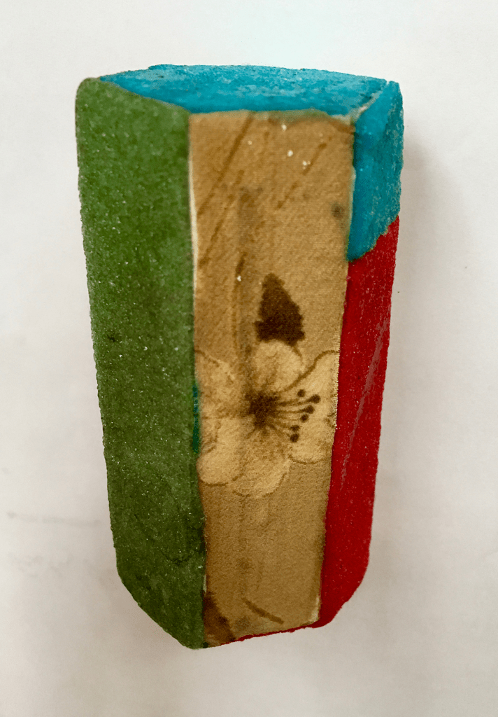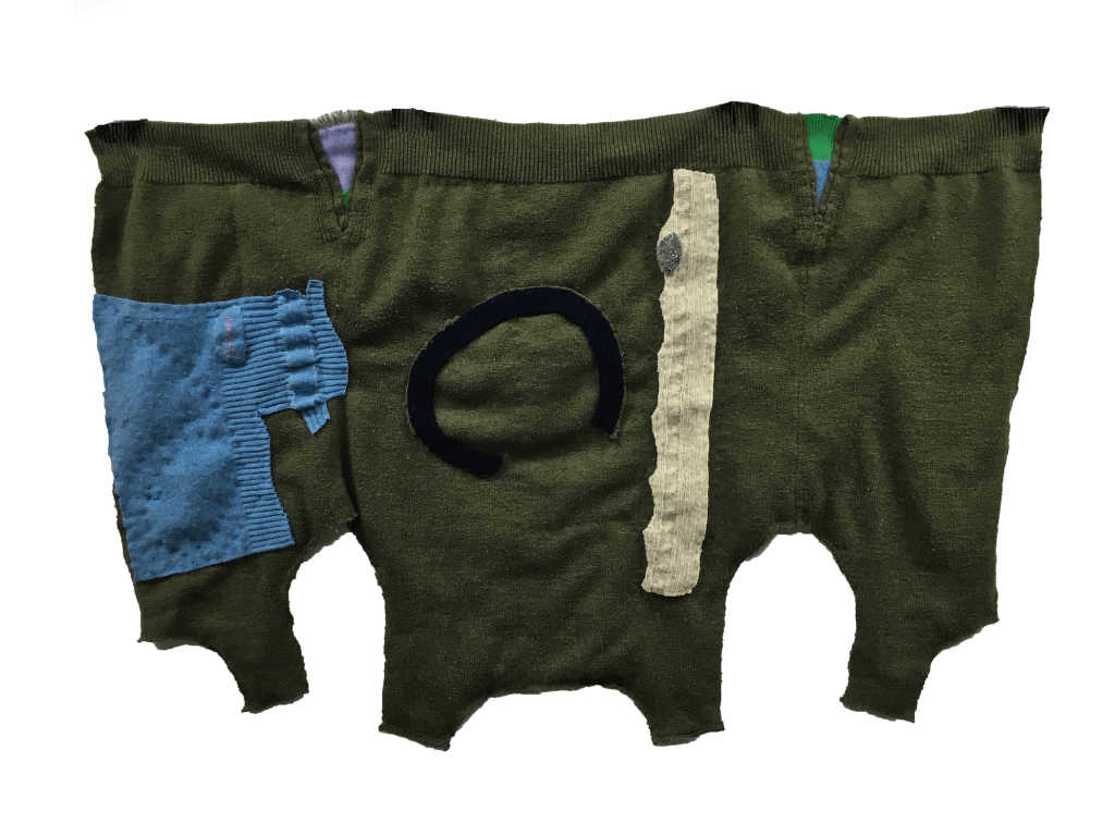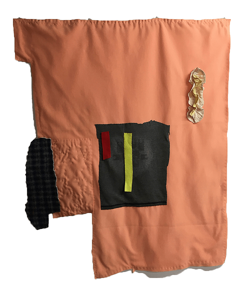 Fabric on wood. 12″x 10”x 1”. Collection of the artist.