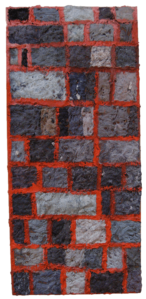 Lint and paint on wood. 24″x 13 1/2″x 3 1/2”. Collection of the artist.