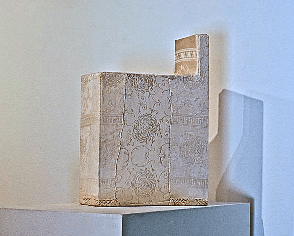 Fabric on cardboard. 18 1/2″x 12 1/2″x5 1/2″. Collection of the artist.