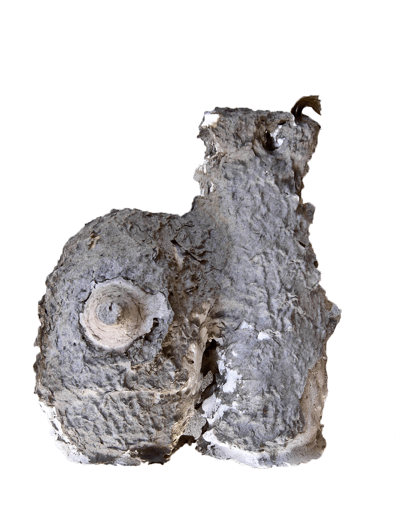 Paper, plaster, hair. 8 1/2”x 7”x 5 1/2” approx. location unknown.