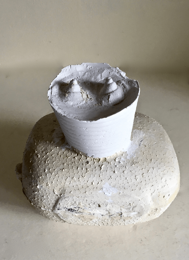 Plaster. 6″x 5 1/2″x 4 1/2″. Collection of the artist.