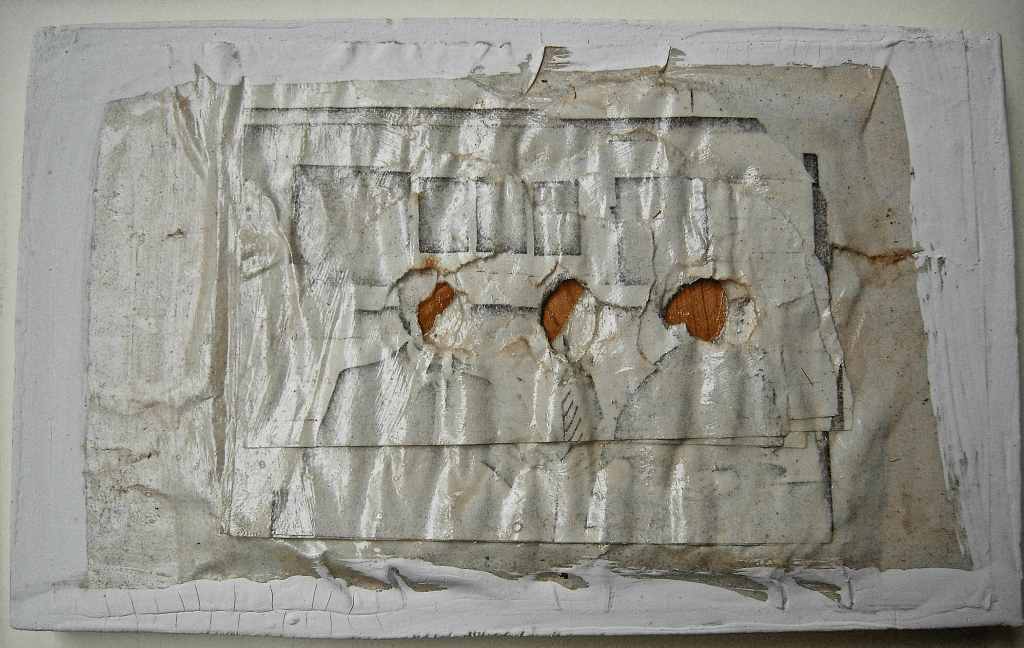 Plaster, frame. 7”x 5” approx. Collection of the artist.
