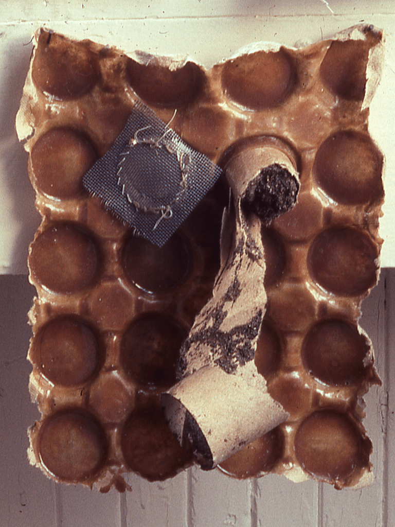 Paper, latex, dirt, screen. 9″x 7 ” approx. Obsolete.