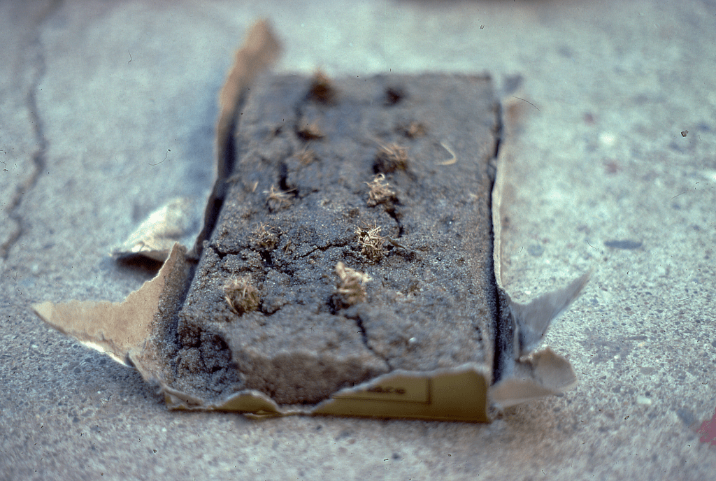 Paper, sand grass. 12 1/4”x 6 1/4”x 1 3/4”. Location unknown.