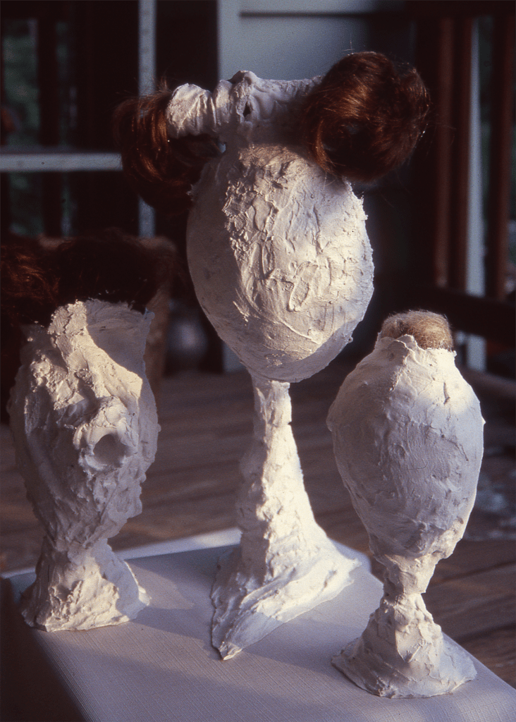 Plaster and hair. 10”-16” tall and up to 10” diameter. Collection of the artist.