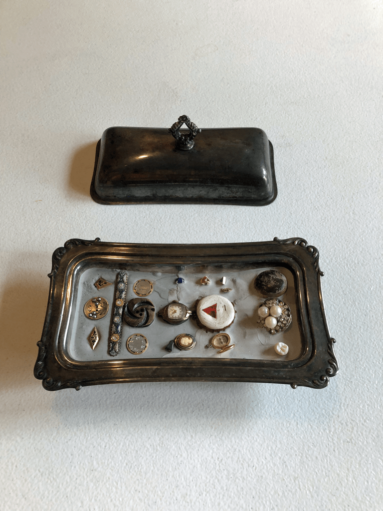 Collection of valuable objects in cement. 7 3/4″x 4 5/8″x 3 7/8″. Collection of the artist.