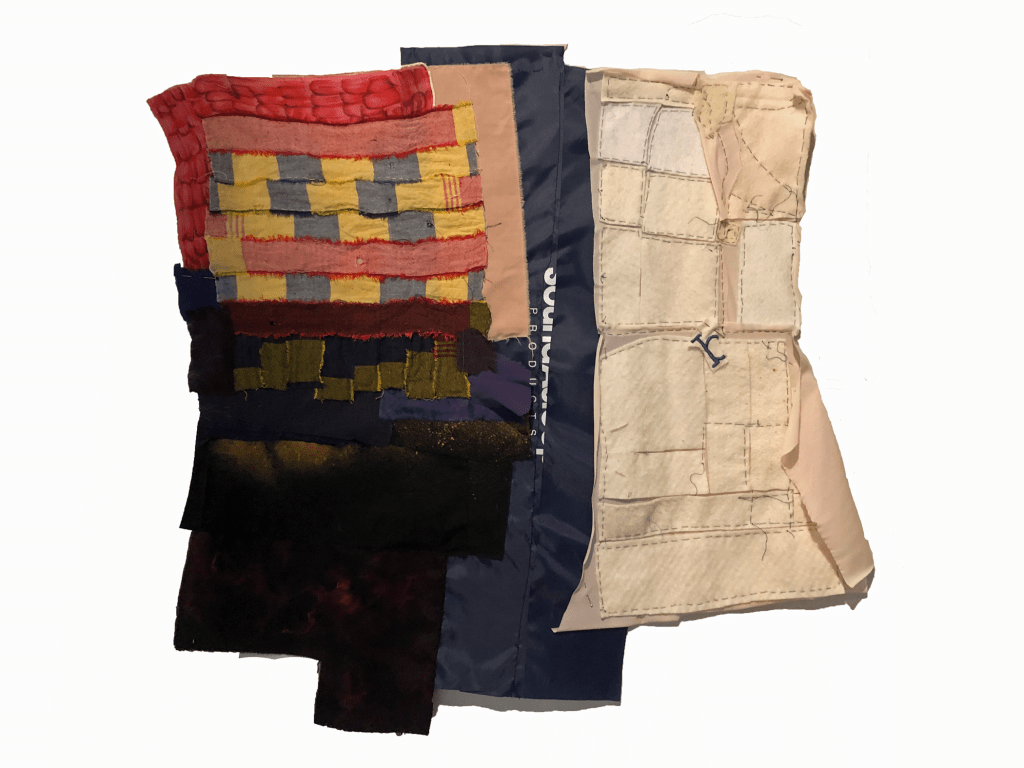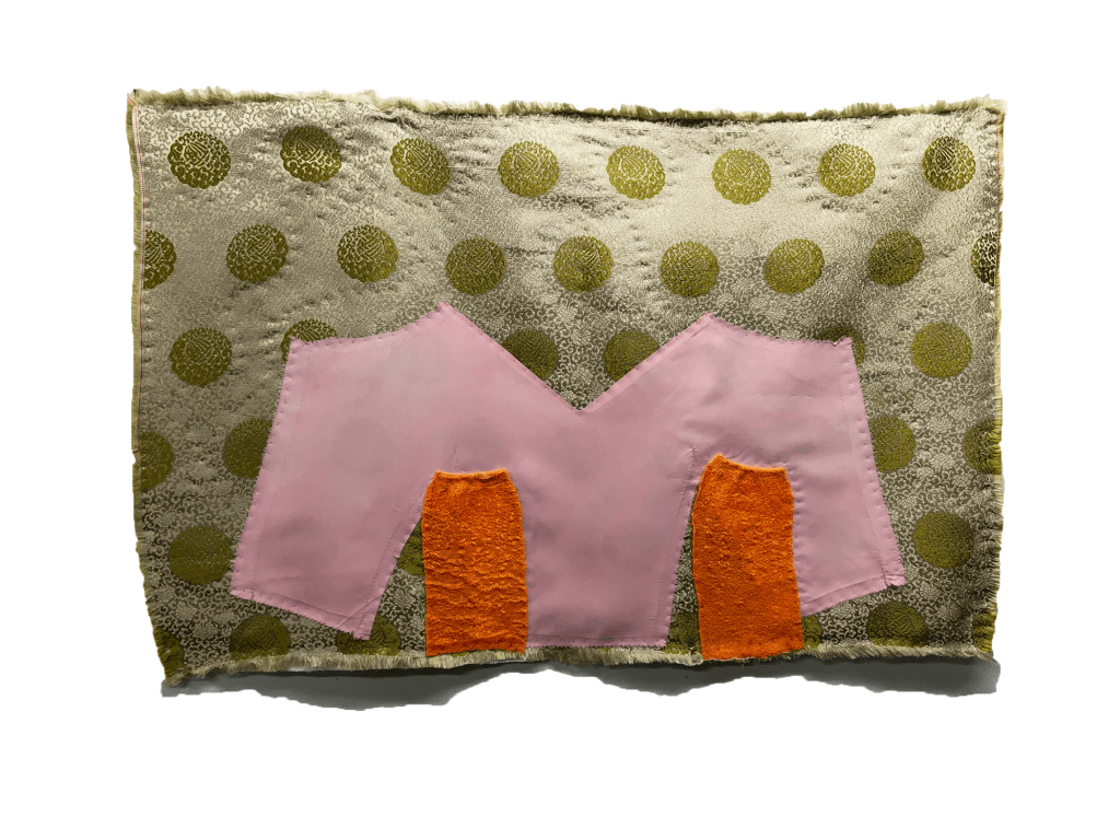 Mixed used fabric applique. 28″x 27″. Collection of the artist.