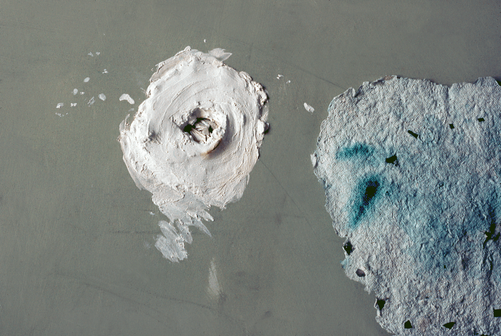 The same ledger, collage with wax. A precursor to my paintings in wax of the mid-late 1980s.