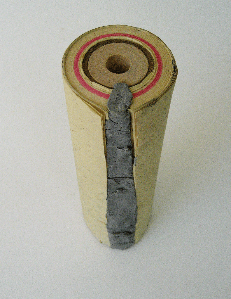 This is a very early work further addressing the concept of record-keeping, journaling with materials, autobiography, Compression, distillation of experience, hinting at these by exposing interior layers.