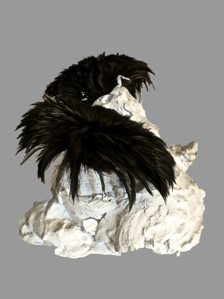 Plaster, feathers. 8” x 10” diameter. Collection of the artist.