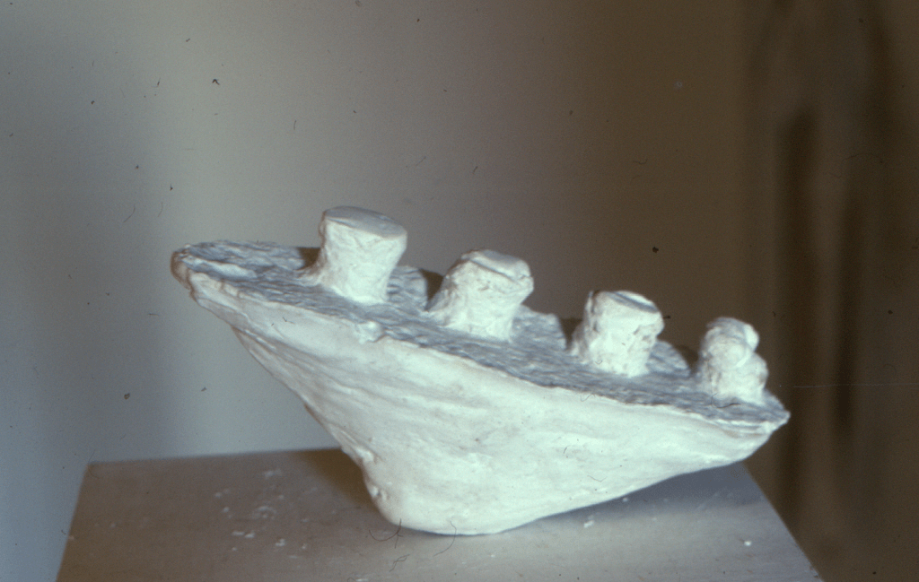 Plaster, feather boa. 15”x 9”x 7”approx. Collection of the artist.