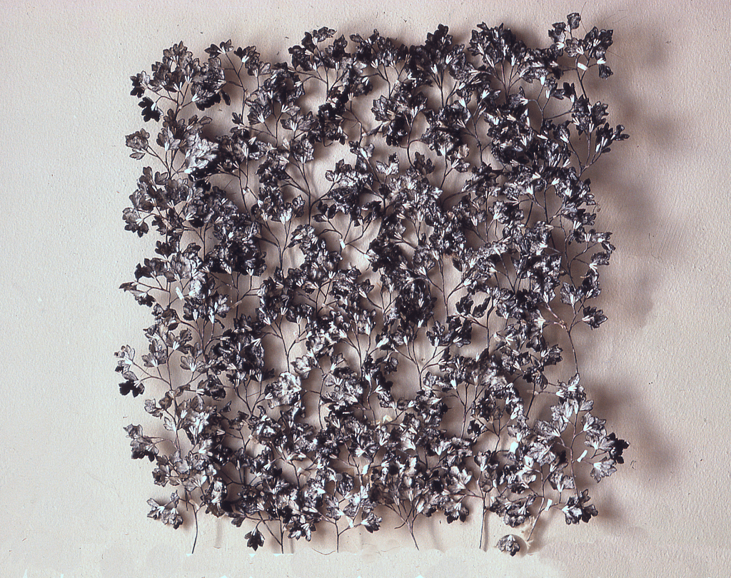 Artficial flowers, wheat paste. 28″x 22″. Non extant.