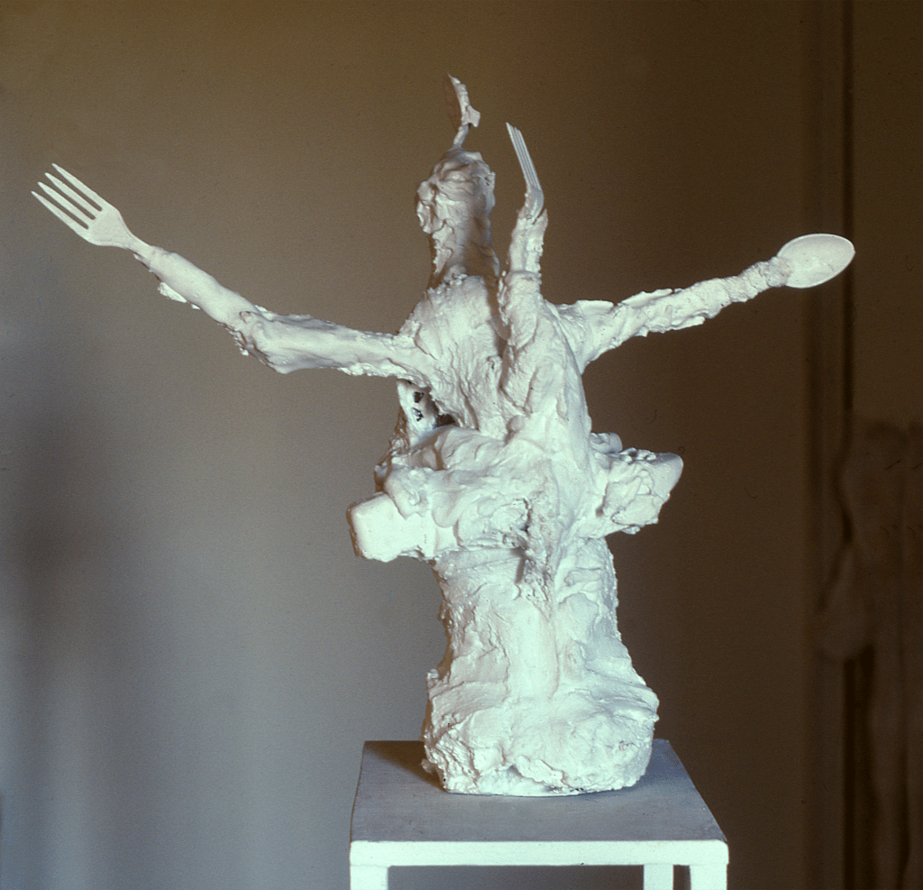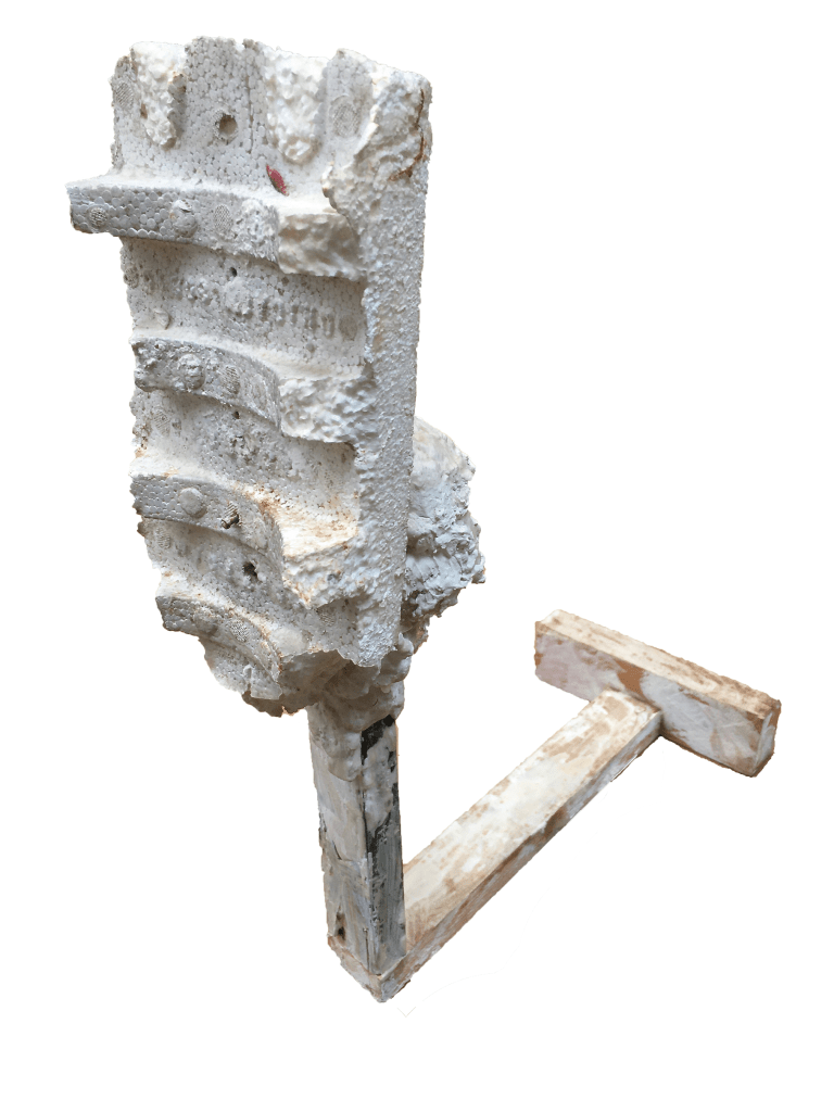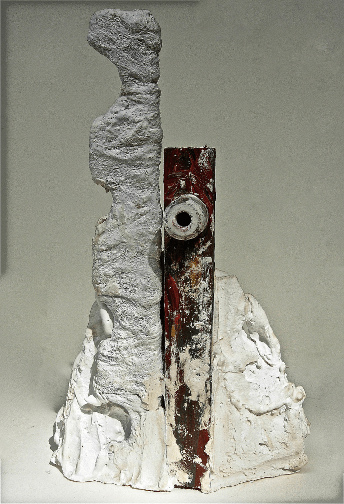 Plaster,wood, styrofoam. 13 1/2″x 11 3/4″x 5 1/2”. Collection of the artist.