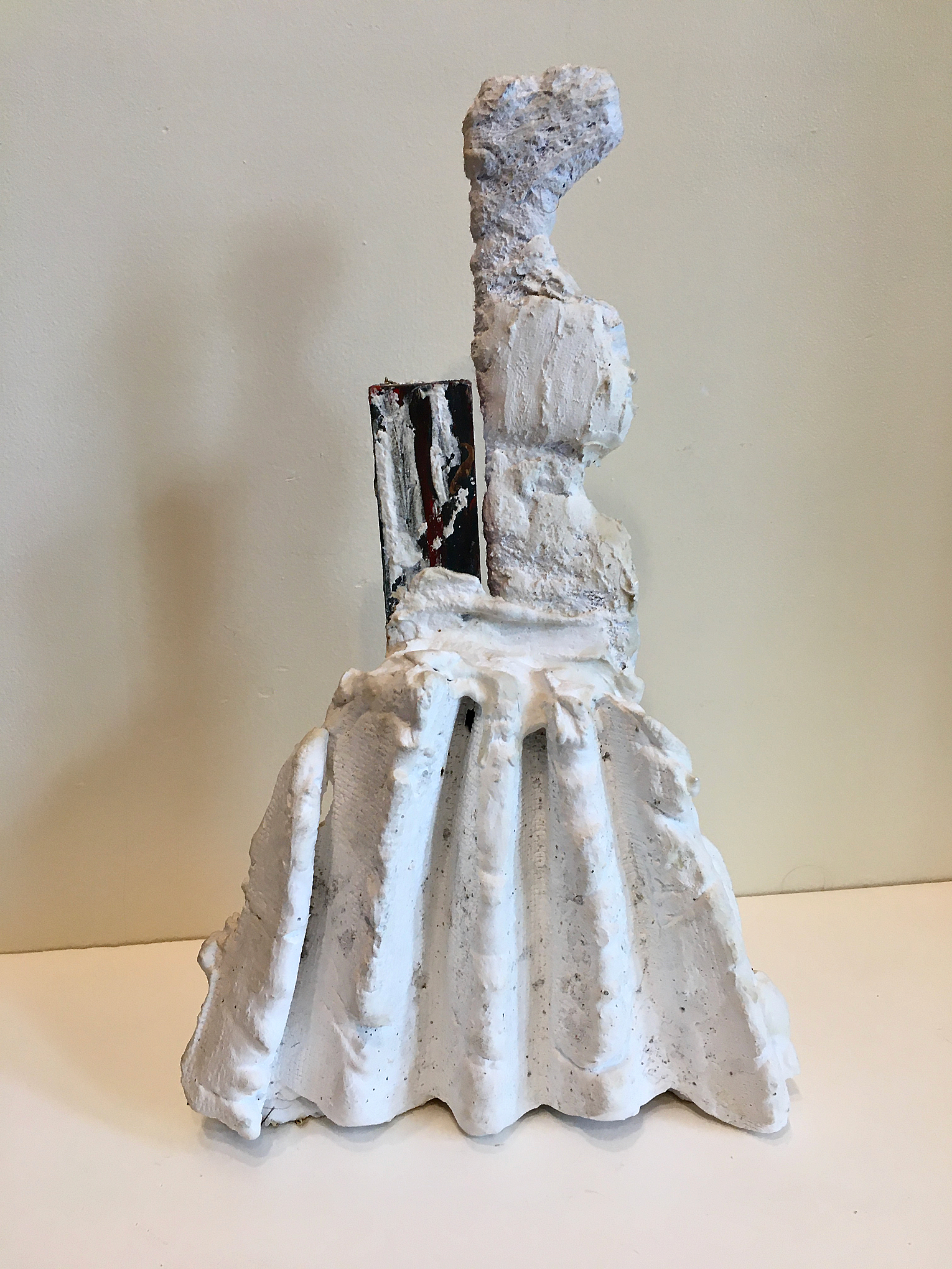 Plaster, fabric ,wood. 13” tall. Collection of the artist.