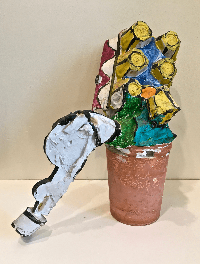 Plaster, ceramic, styrofoam, paint.15″x 8”x 7 1/2”. Collection of the artist.