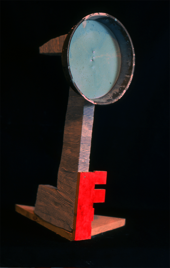 Paint, pan, fabric, wood. 21 3/4”x 11 1/2”x 9”. Non-extant.