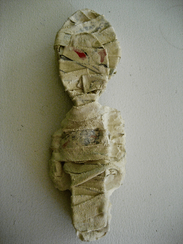 Plaster, plastic, fabric. 12″x 6 1/2″x 6 1/2”. Collection of the artist.