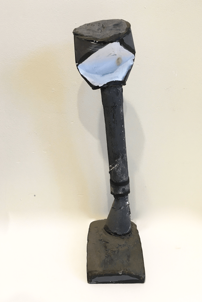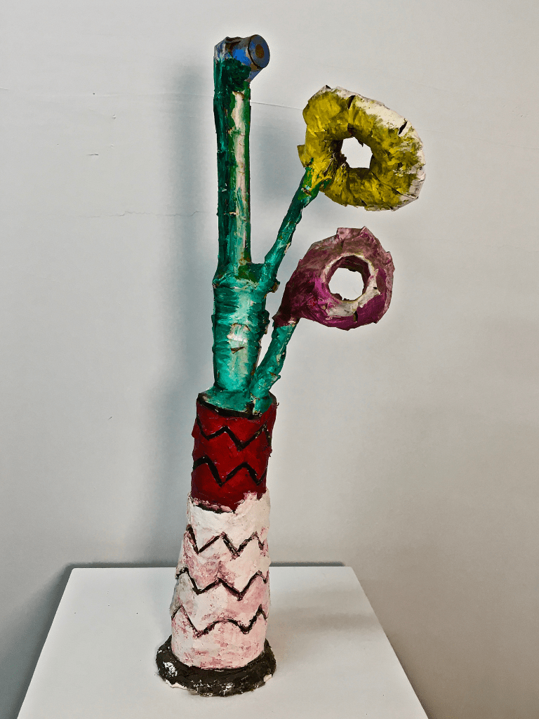 Painted paper and plaster. 21 1/2” tall 8”diameter. Collection of the artist.
