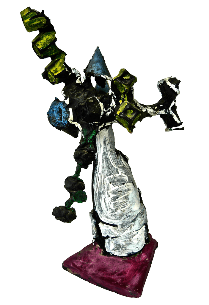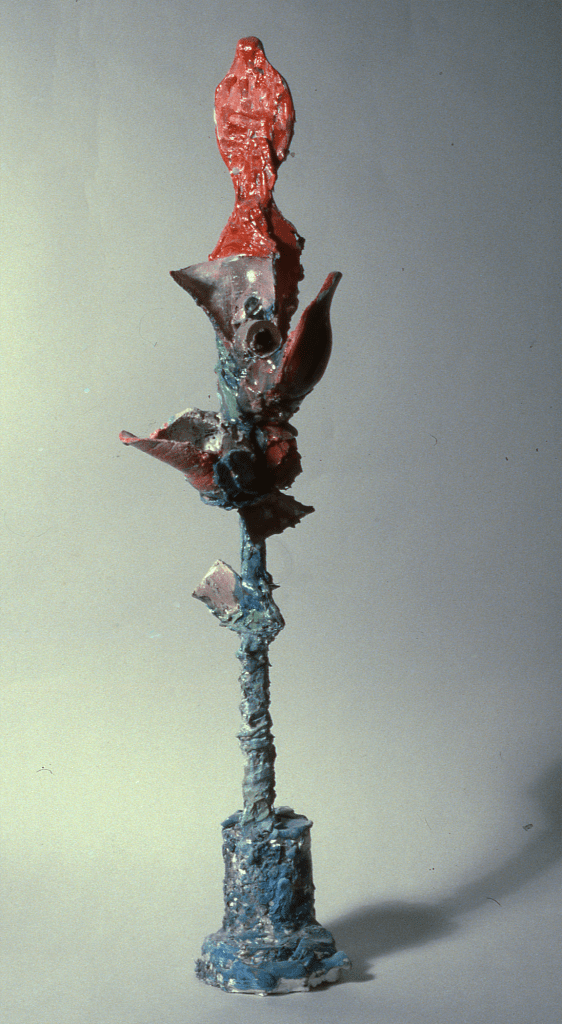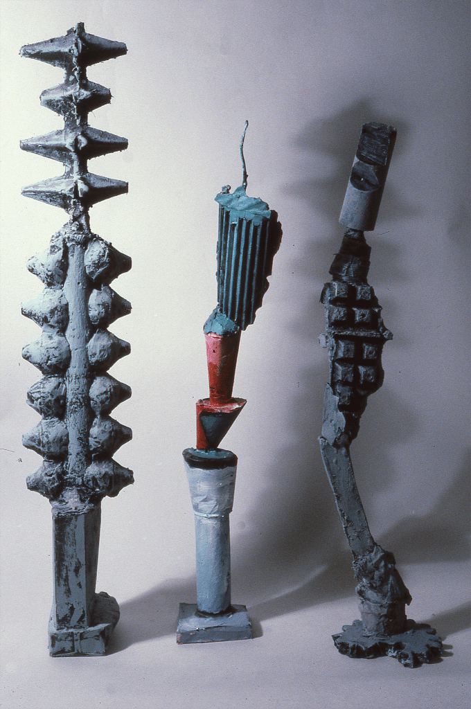 Painted plaster. tallest 22″ approx. Collection of the artist and location unknown.