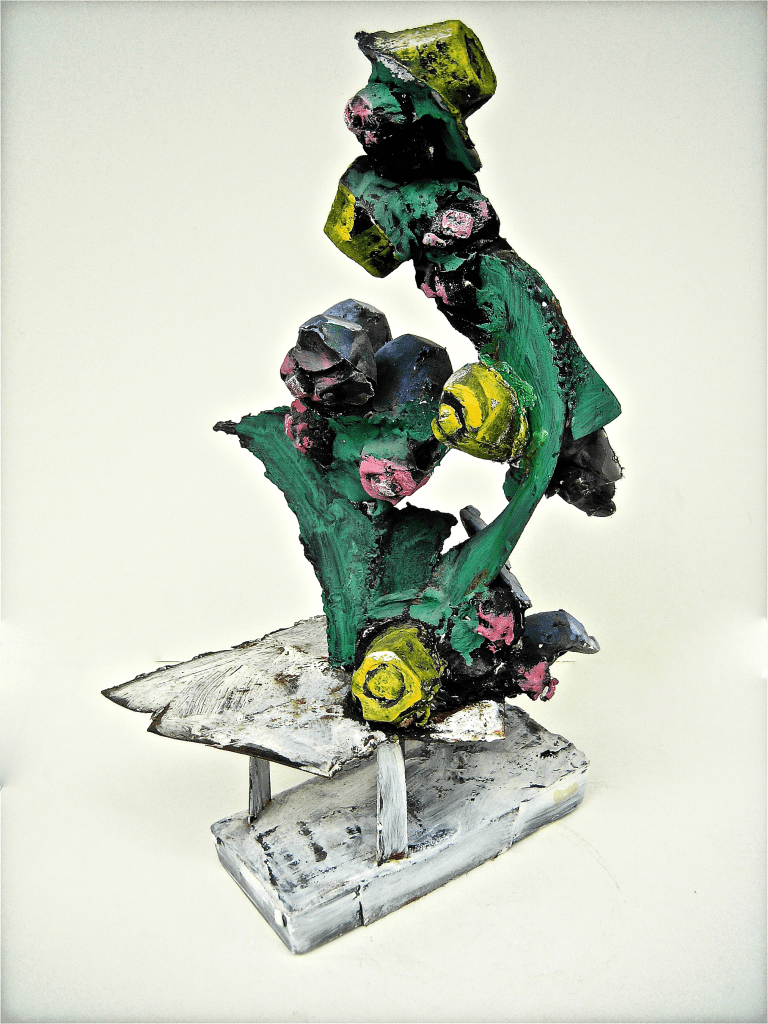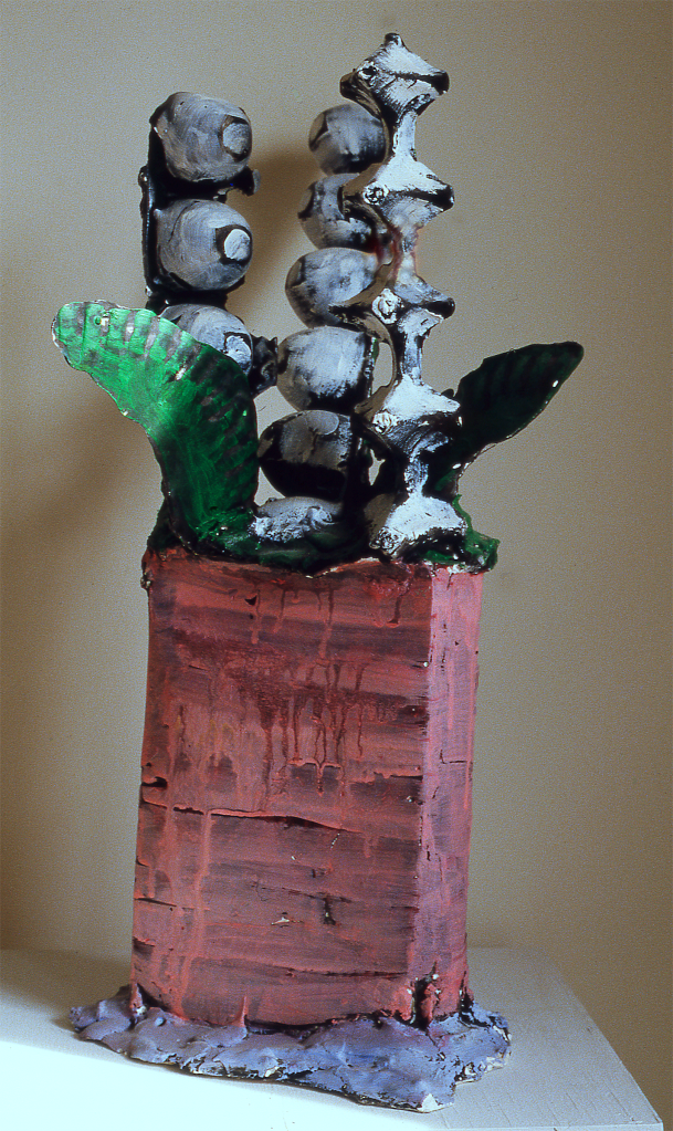 Painted plaster and welded steel. 10″x 8 1/2″x 17″. Collection of the artist.