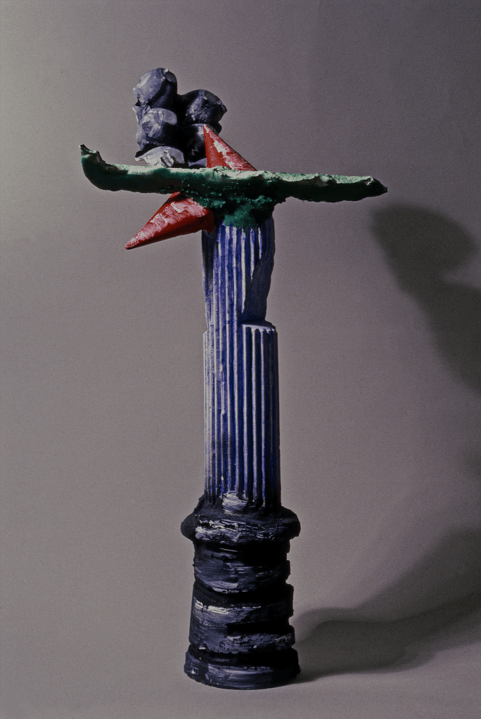 Painted plaster. 22 1/2’x 5″ diameter. damaged. Collection of the artist.