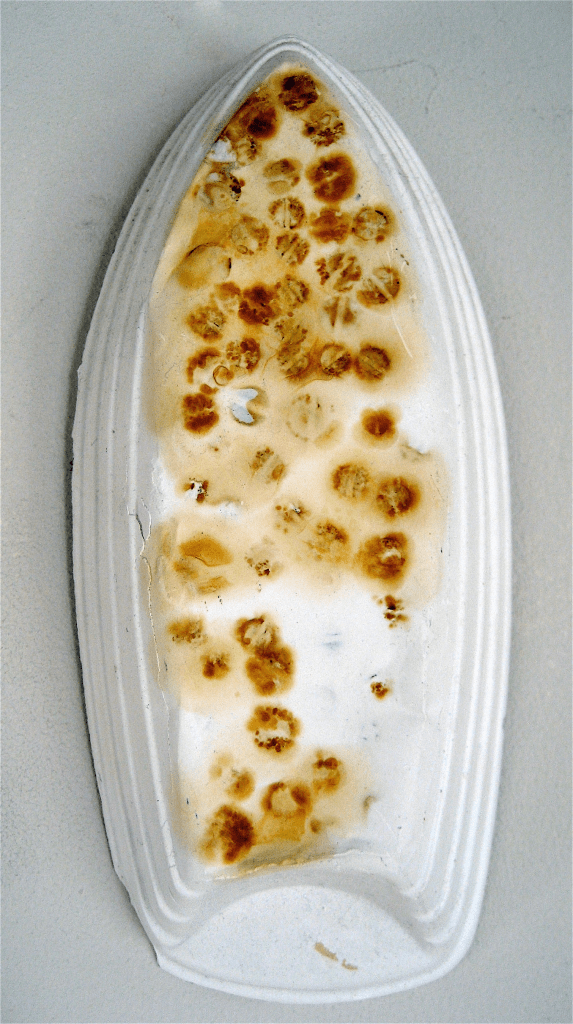 Painted plaster, foam rubber. 15″ round ?. Location unknown.