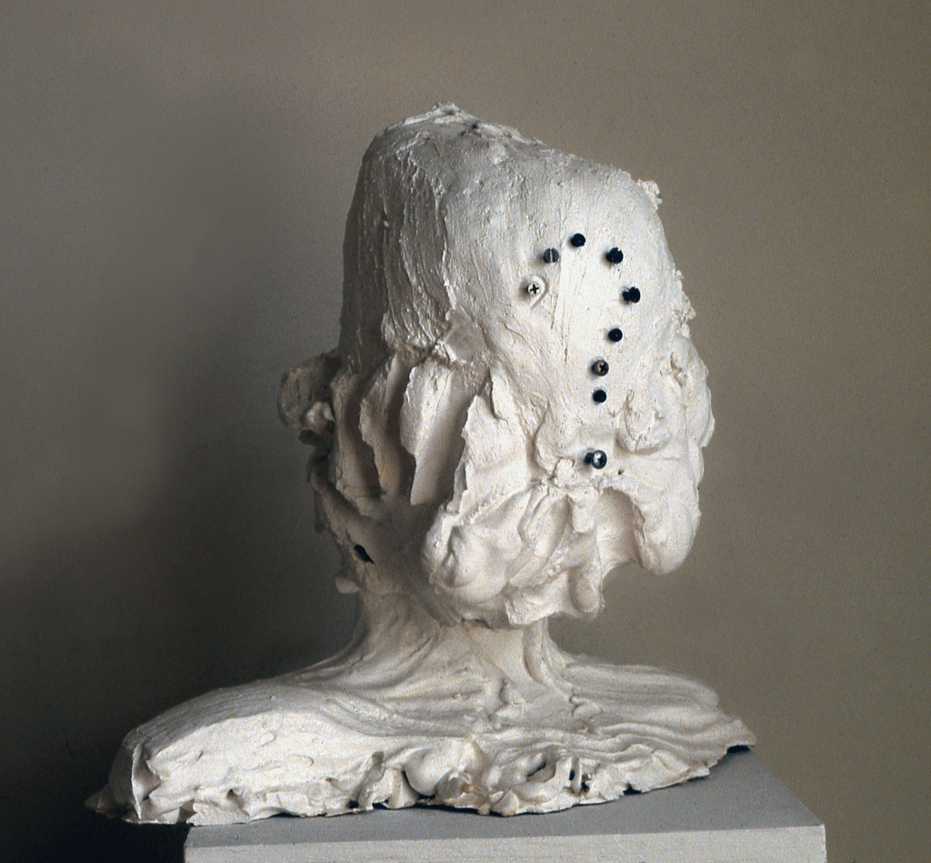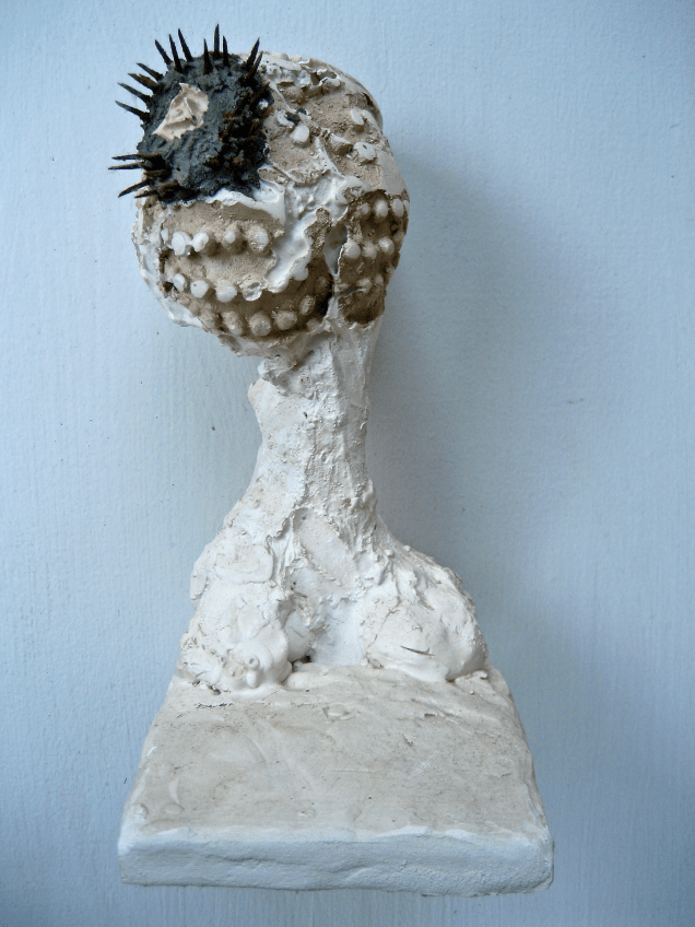 Plaster, cement, tacks. 9″x 6″x 10 3/4″. Collection of the artist.