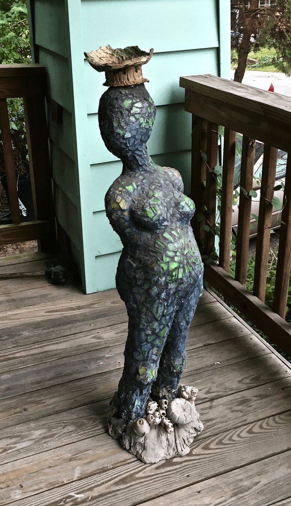 Plaster, cement, glass.approx 48″ tall. Location unknown.
