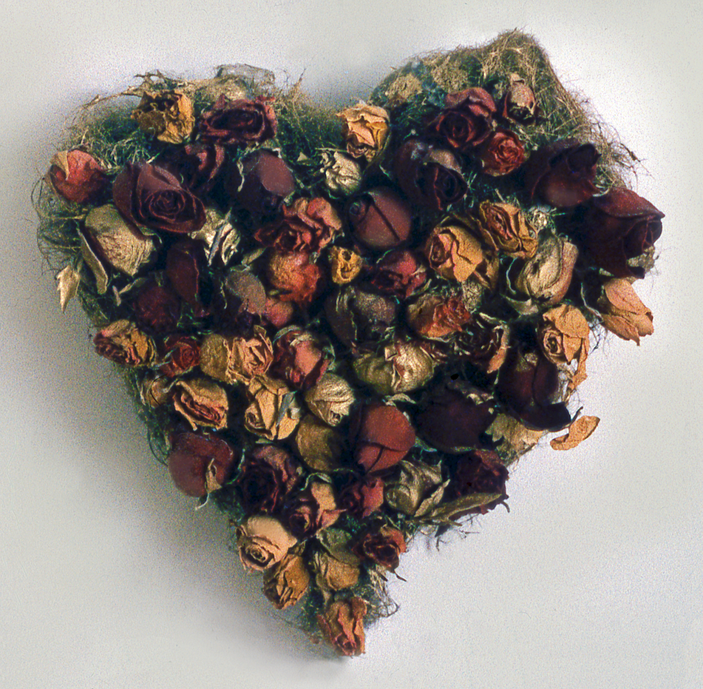 Hair, roses, rhoplex, acrylic medium, or glue. Location unknown.