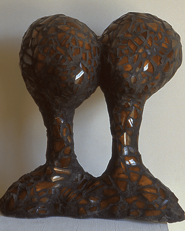 Plaster, glass, and grout. 15”x 13”x 9”. Collection of Dr. Joseph Tarantolo.