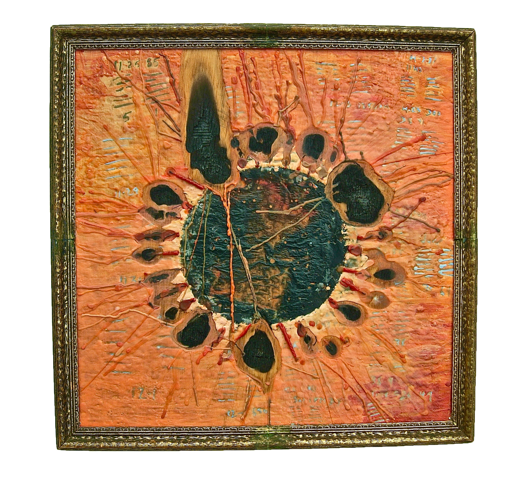 Wax on wood. 12″x 12″. Collection of James Tyler.