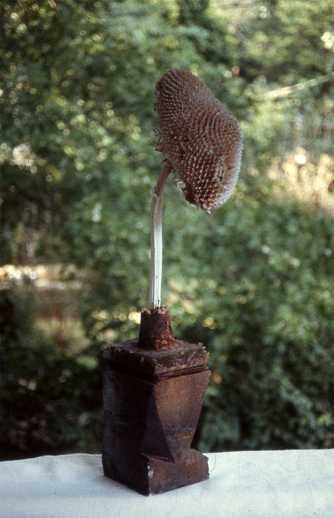 Plaster, carpet tacks. 13 1/2″x 7″ diam. Collection of the artist.