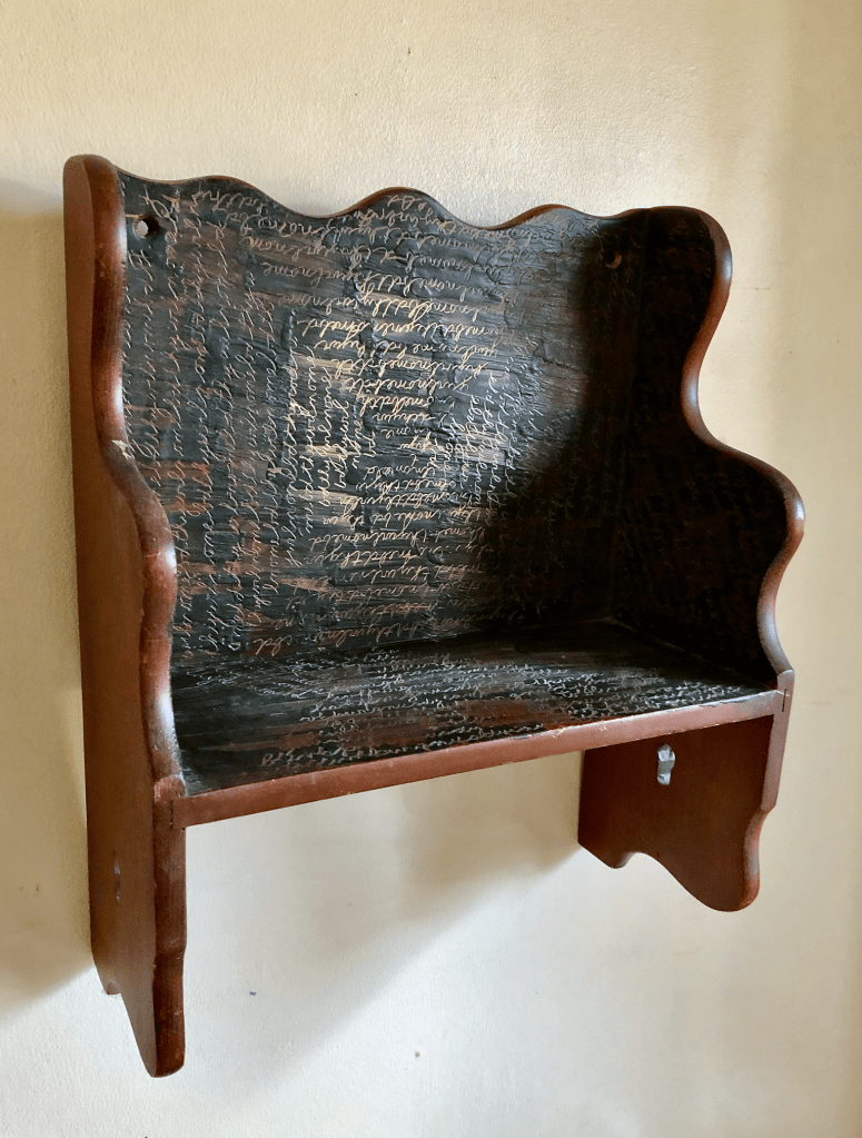.1138 (shelf) 1994 March 29, 2022July 1, 2022betsypackardLeave a comment Incised wax on wood. 15″x 12 1/4″x 5 1/2″. Collection of the artist.