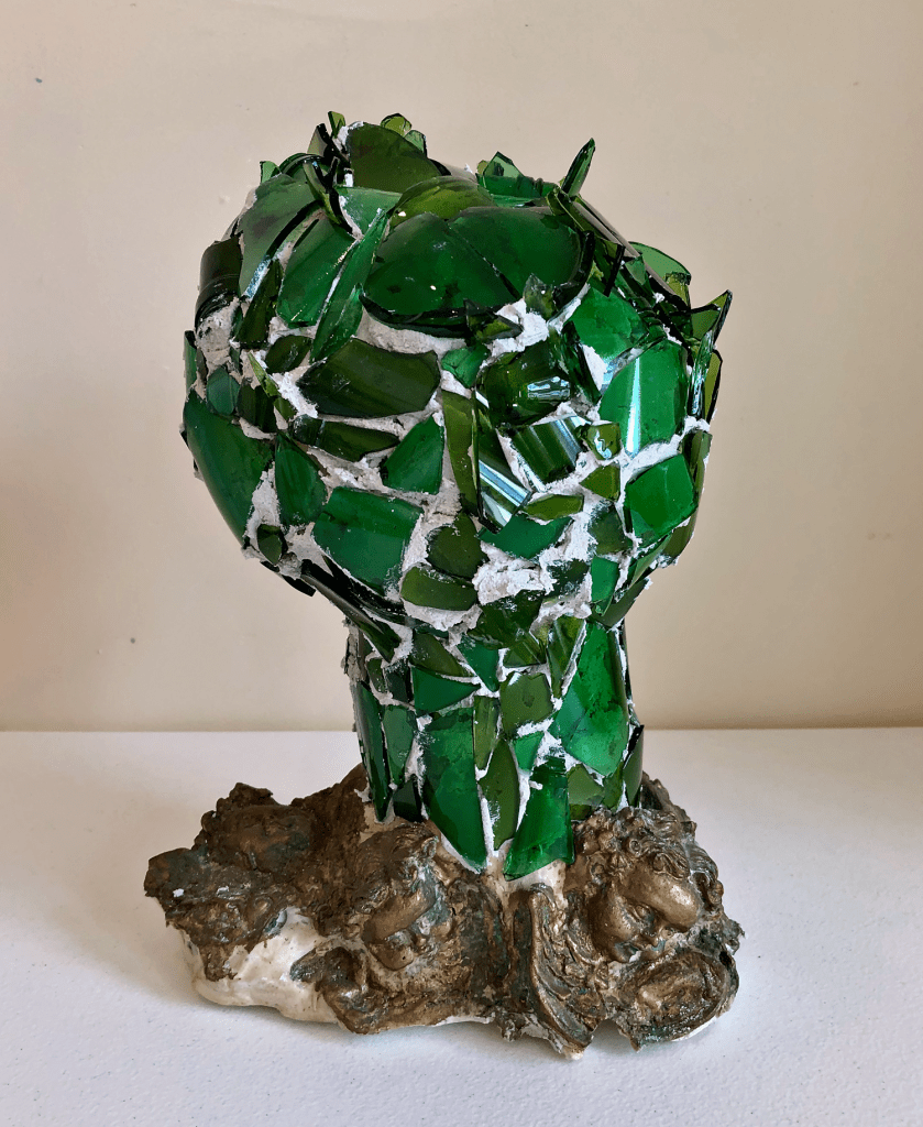 .0658a 1994, revised 2022 April 10, 2022betsypackard1 Comment Plaster, glass, metallic leaf, grout. 14″x 11″ diameter. Collection of the artist.