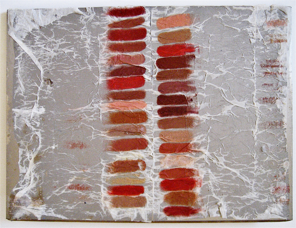 Lipstick on paper on Kleenex on board. 12’x 8″ approx. Non-extant.