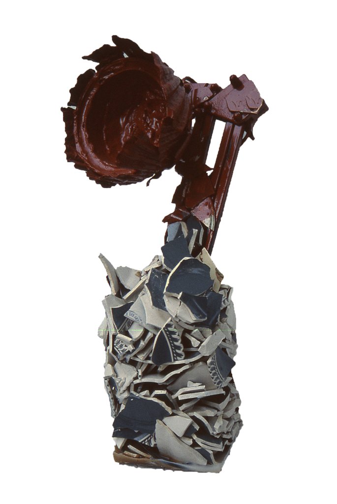 Lamp, china, shells, paint. 20″x 10” diam. Non-extant.