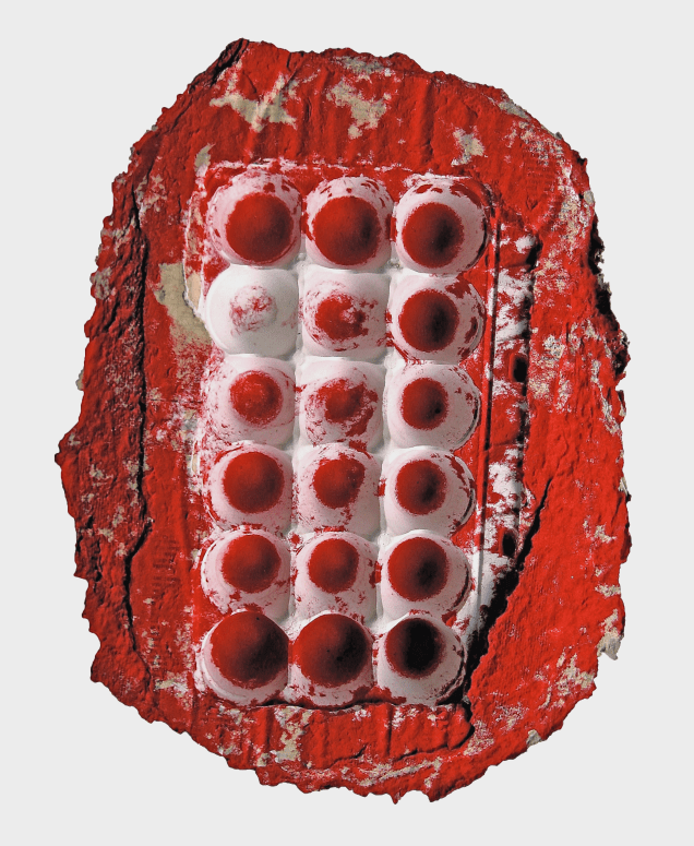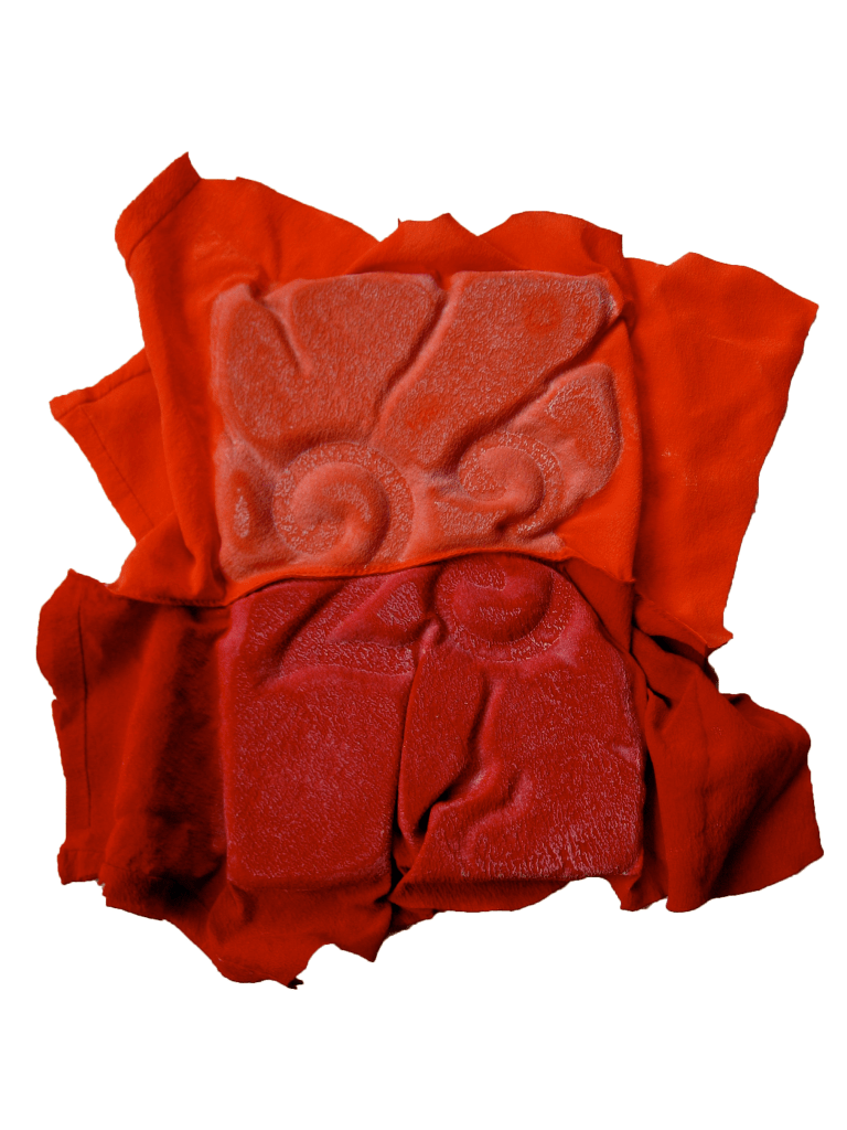 Plaster, red paper napkins. 17”x 12 1/2″x 3 1/2”. Collection of the artist.
