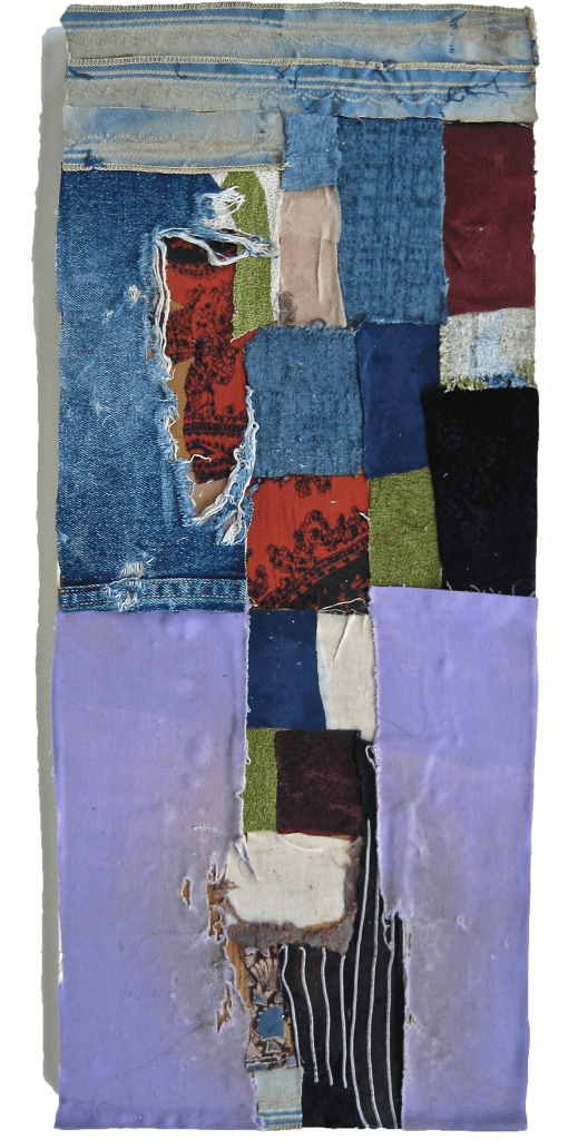 Fabric on wood. 9 1/4”x 22”. Collection of Susan Yashar.
