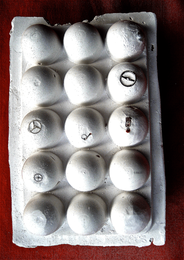 Plaster and paint. 16″x 10″x 3 1/2″ approx. Collection of the artist.