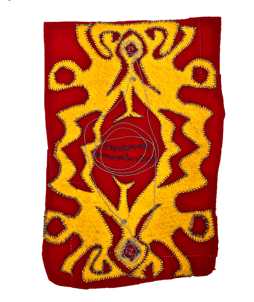 Embroidery on felt. 17″x12 3/4”. Collection of the artist.