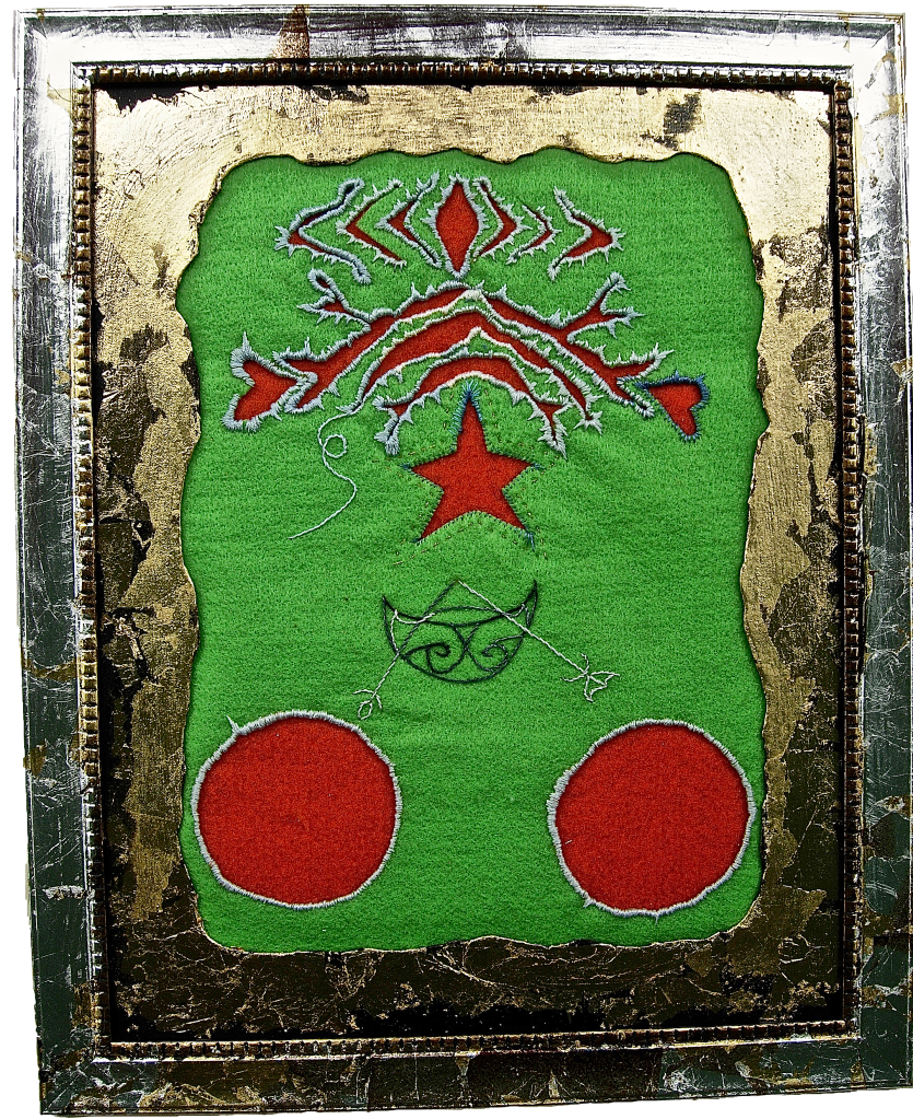 Applique on felt, 12″x 17”. Collection of the artist.