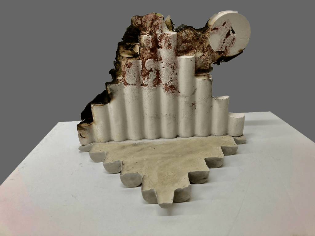Cement, plaster, fabric, lint. 10″x 7 1/2″x 7″. Collection of the artist.