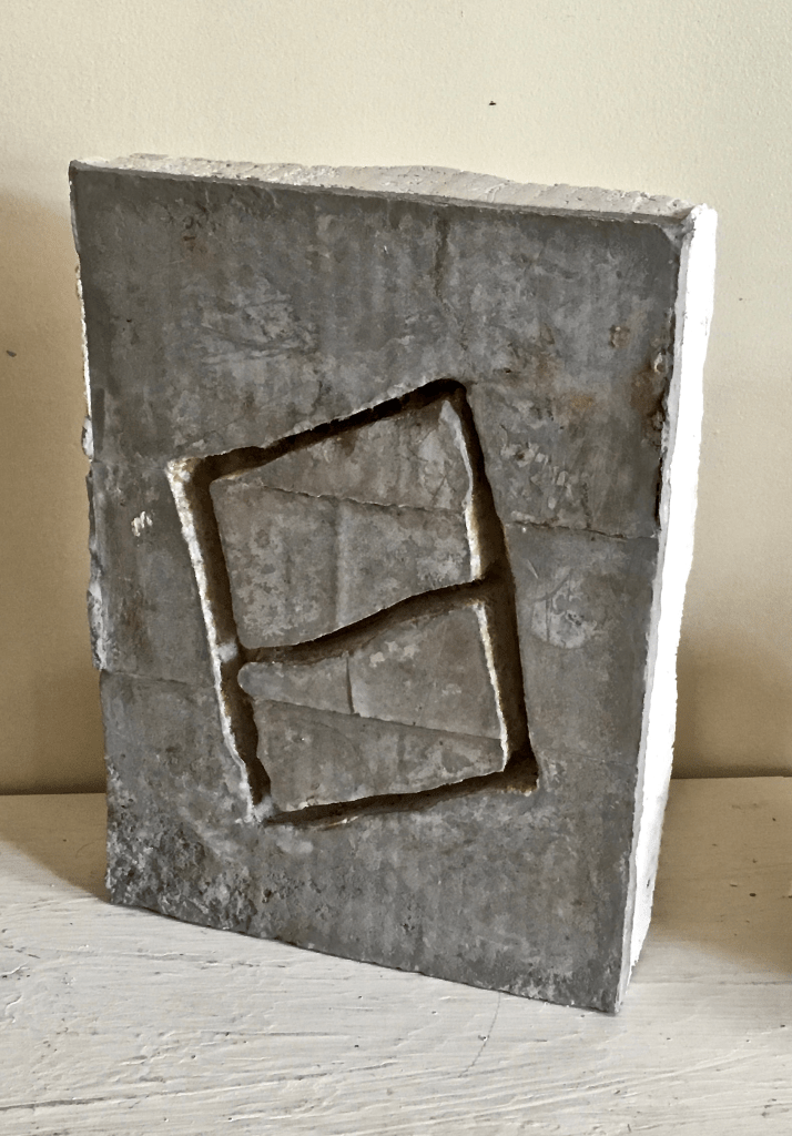 Plaster and cement. 10 3/4″x 7 3/4″x 4″. Collection of the artist.